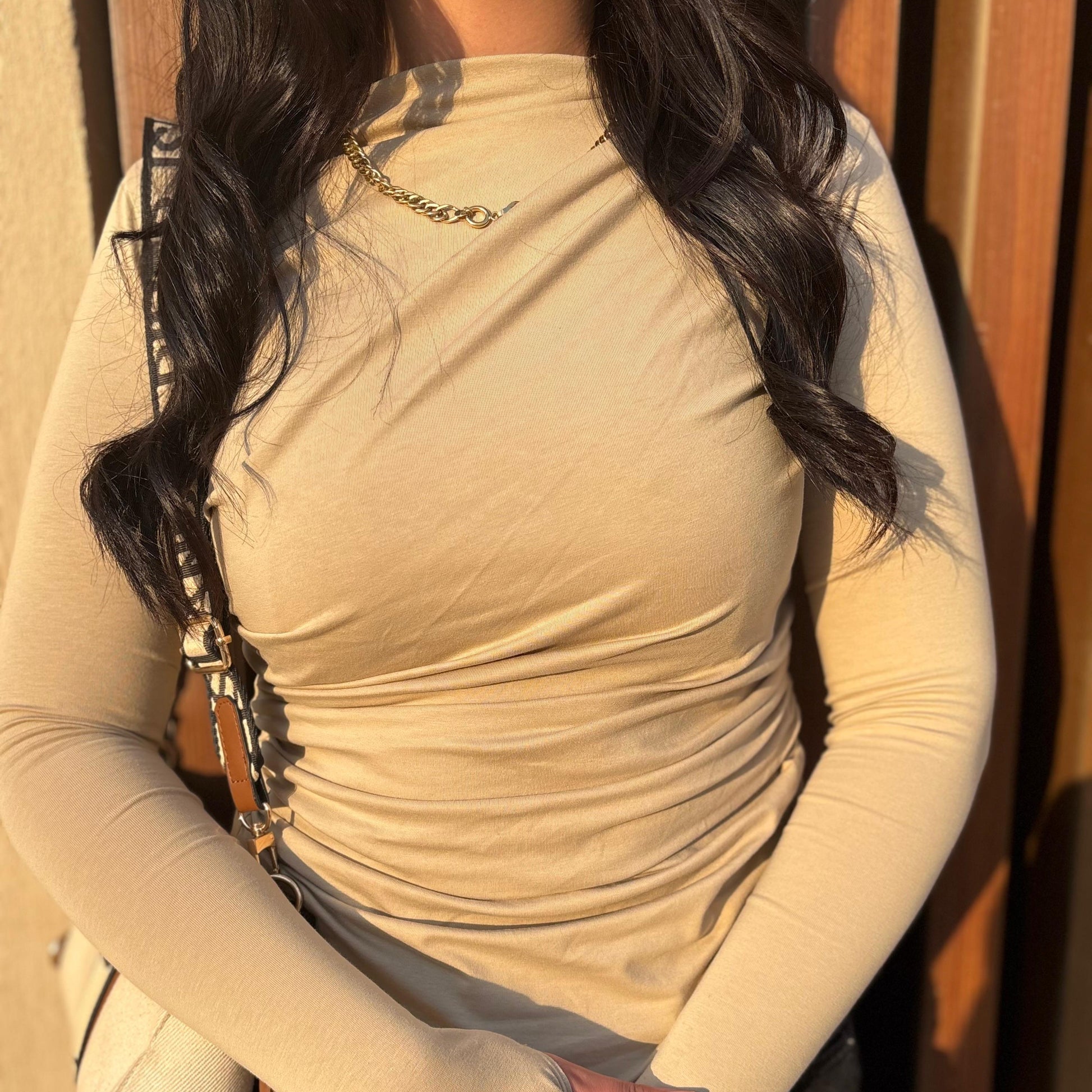 Maven Ruched Long Sleeve Top in Beige